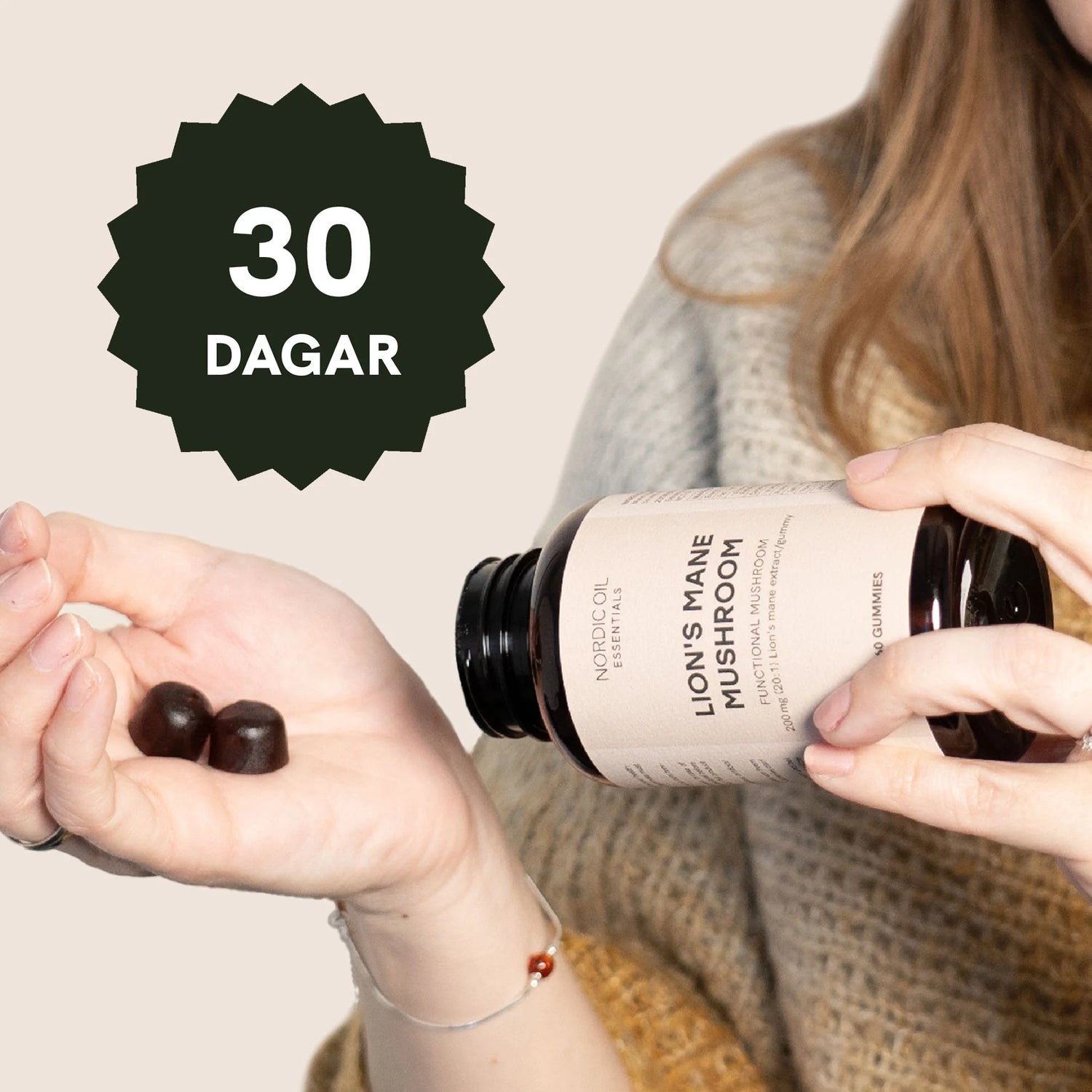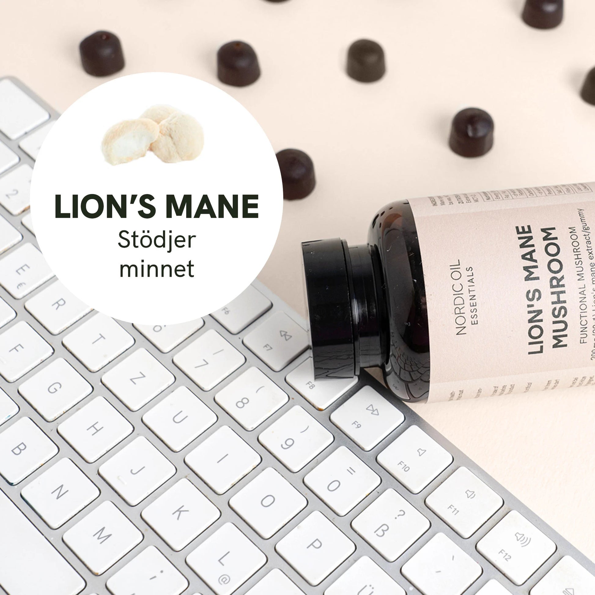 - 60 gummies med 200 mg ekologisk Lion’s Mane-extrakt