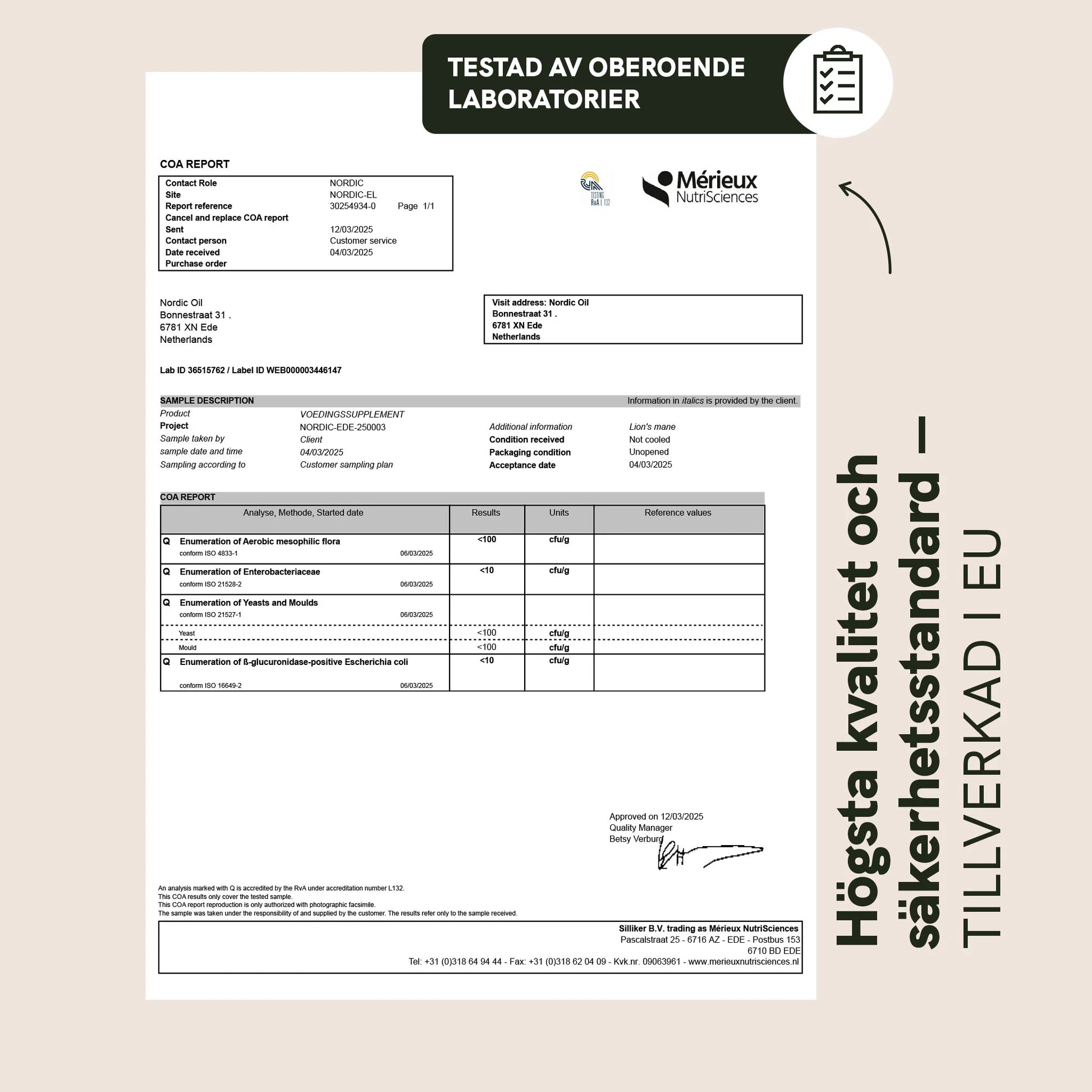 - 20:1 extrakt: 200 mg (motsvarar 4000 mg Lion’s Mane)
